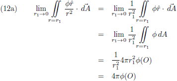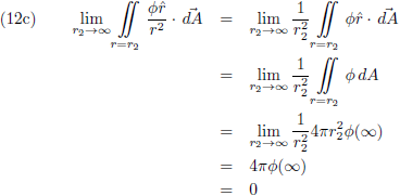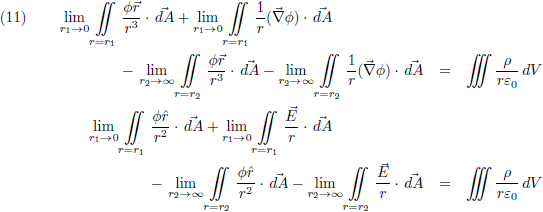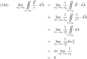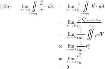 Wanneer r naar nul nadert dan is er geen omsloten lading meer (die wordt nul) en het omsluitende oppervlak