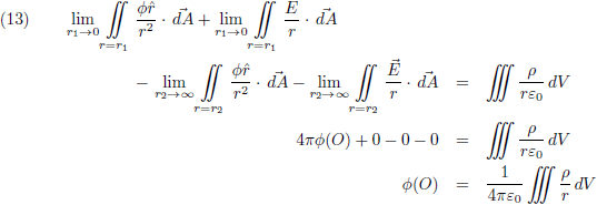 is φ de potentiaal in dat enkele punt (= de oorsprong = O).