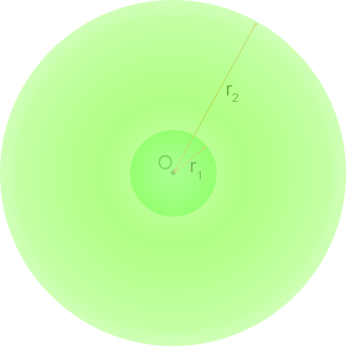 Om die oorsprong leg ik twee bolvormige oppervlakken aan met stralen r