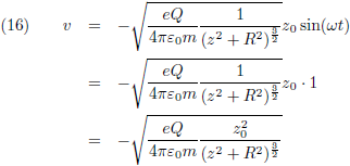 En zo vinden we de snelheid van het elektron op het moment dat hij door het vlak van de ring gaat.