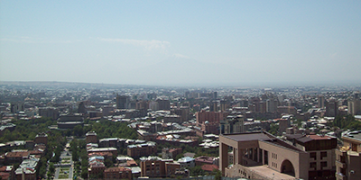 Omgeving Yerevan, op de achtergrond zijn (vaag) de