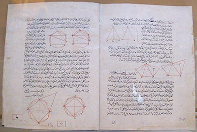 Een wiskundeboek van vijf eeuwen oud, een boek van meer dan tien eeuwen oud met gospelliederen, medische boeken uit de twaalfde eeuw, hele oude Korans, het ligt er allemaal. Ik ben onder de indruk van wat ze toen al in elkaar konden zetten en het ziet er hier ook allemaal keurig uit.