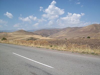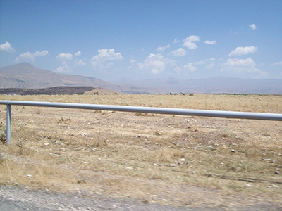 Ik heb mij ingeschreven voor een tour die langs een aantal bezienswaardigheden voert buiten Yerevan. Er zijn drie deelnemers, het Italiaanse-stel-van-de-bankpas en ik. Waarom iedereen zo lovend is over Yerevan is mij een raadsel (zoals inmiddels wel duidelijk zal zijn), maar de schoonheid van de rest van het land wordt mij vandaag getoond. Trouwens, eerlijk is eerlijk, vandaag is het zondag, er is minder verkeer in de stad, alle fonteinen zijn aan, er is een hoop volk op straat, en ik liep vanavond nog door het centrum en over het centrale plein en ik vond het heel sfeervol en gezellig.